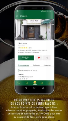 - Consulter la fiche des établissements référencés sur l’Application : nature du lieu consulté, emplacement, événements, promotions, informations pratiques ;