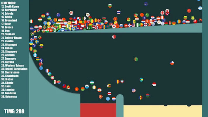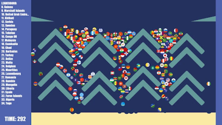 - Normal mode: each level, all countries participate in the race without elimination. The last country is the winner.