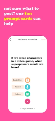 Add interactive games, conversation cards, and more to make your memory sharing even more engaging!