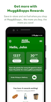 - Download our app - Sign up for your free Mugg&Bopps Rewards membership - Find a participating location or select an offer that you like - Scan your barcode before you pay inside to earn and redeem rewards - Just getting gas? Enter your Alt ID at the pump to apply your reward balance and pay less for fuel.
