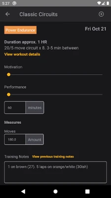 The Sequence mobile app lets you plan your week by scheduling workouts and view your training plan on the go. You can view details and complete your workouts at the crag or the gym, entering notes and measures for the workout as needed, as well as entering your daily biometric records.